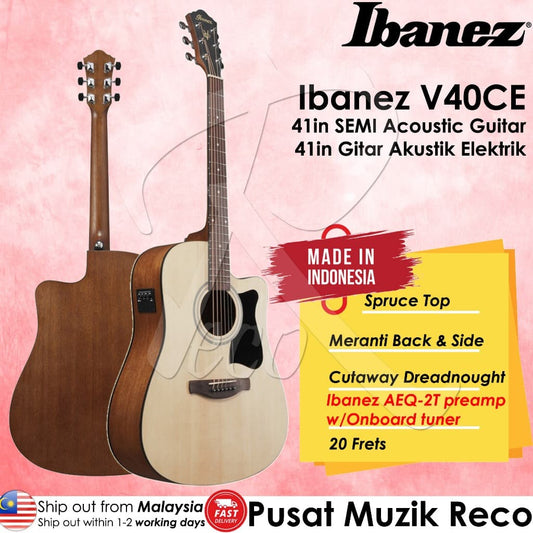 Ibanez V40CE-OPN Acoustic Electric Guitar, Open Pore Natural