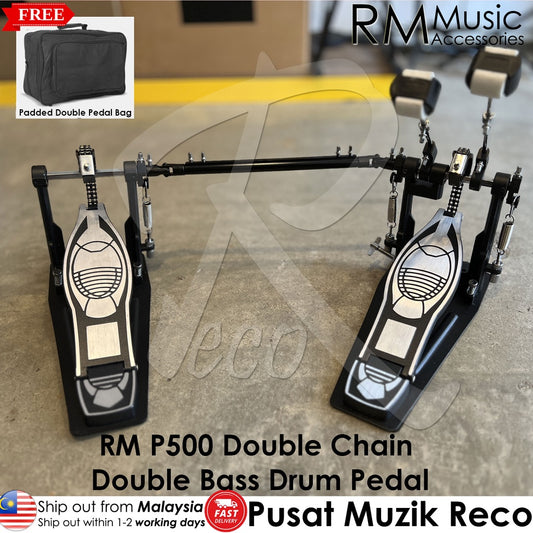 RM P500 Dual Chain Double Bass Drum Pedal FREE Padded Double Pedal Bag