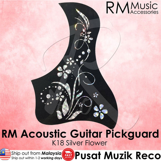 RM I18 Acoustic Guitar Pickguard, Silver Flower