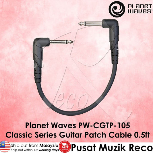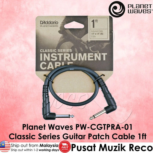 D'Addario Planet Waves PW-CGTPRA-01 Classic Series Guitar Effect Patch Cable - 1ft Right Angle