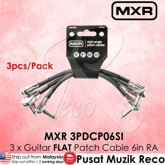 Jim Dunlop MXR 3PDCP06 6 inch Guitar Effect Patch Cable FLAT / PANCAKE Right Angle Pack of 3pcs