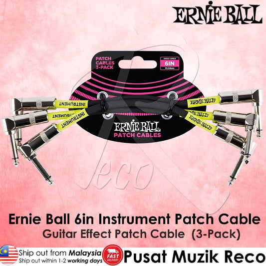 Ernie Ball 6221 6 Inch BLACK Flat Ribbon Guitar Effect Pedal Patch Cable 3/Pack