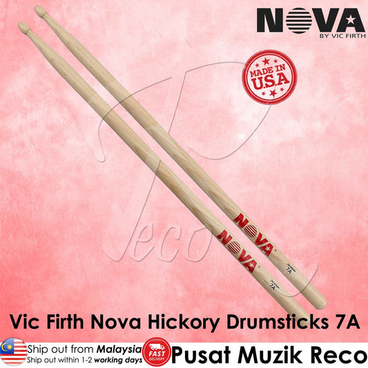 Vic Firth Nova N7A Hickory Drumsticks 7A, Wood Tip