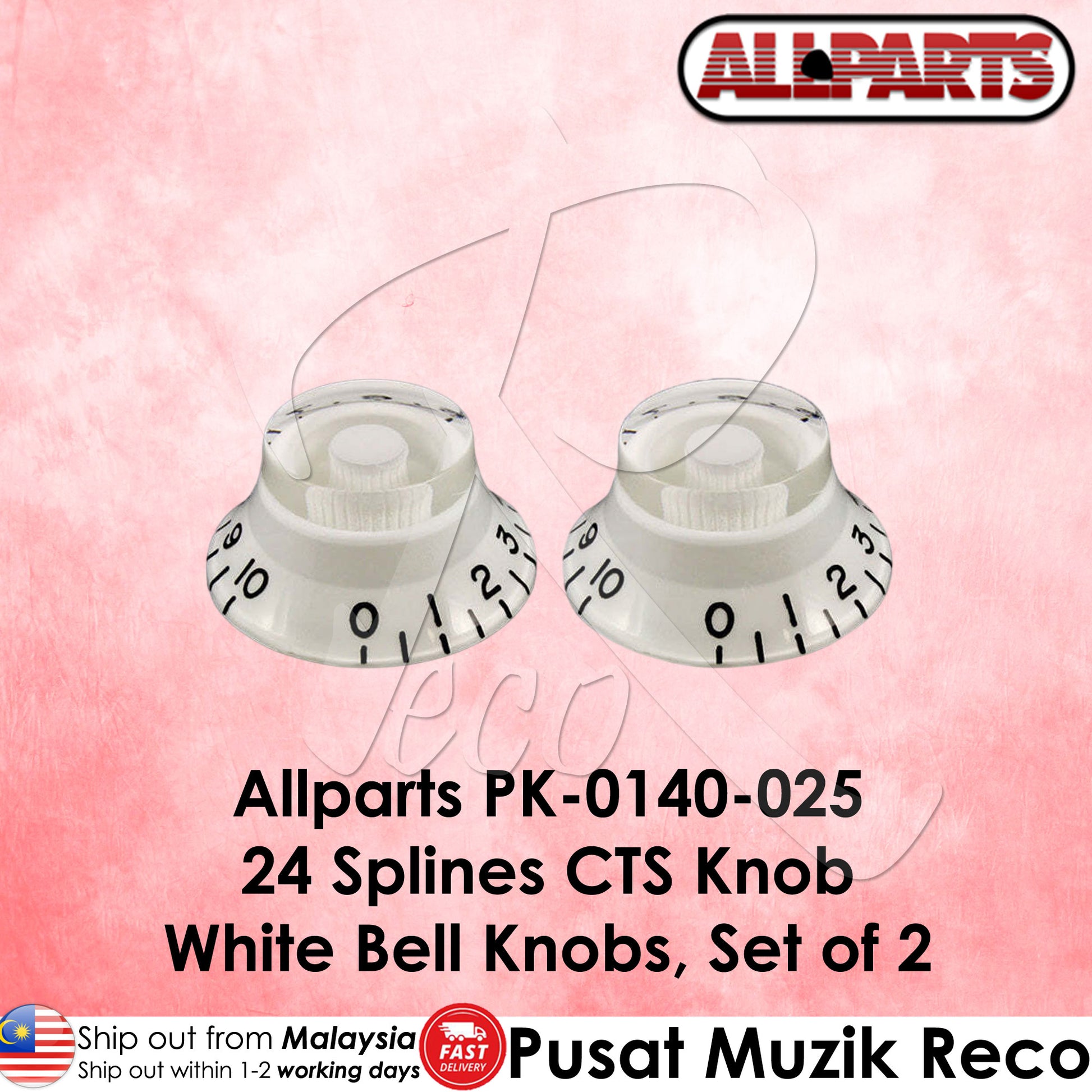Allparts PK-0140-025 24 Spline CTS Knob Electric Guitar White Bell Knob Control Knob Volume Tone Knob
