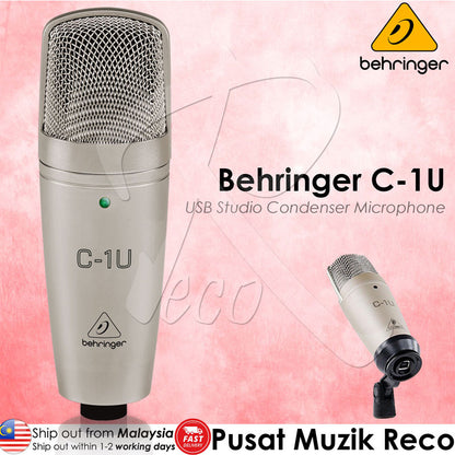 The Behringer C-1U USB studio condenser mic is a podcaster's dream come true. With a simple USB connection straight into your computer, the C-1U brings studio-quality sound to your podcasts. Musicians who record music on computers now have a simple, affordable way to capture high-quality vocal and acoustic instrument performances as well. The C-1U includes a bundle of cool podcasting and audio editing software for your Mac or PC. If you're a computerized musician or podcaster, you need a mic designed specifically for what you do: the Behringer C-1U.