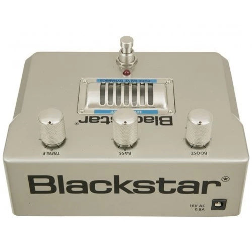 The Blackstar HT-BOOST's guitar pedal's high voltage gain circuit is like adding two extra hot valve stages to your amp. Unlike inferior battery-powered products, you don't lose any precious dynamics or tone. Add to this an all-valve cut and boost tone section and a high-level output, specially designed to drive your valve amp hard, and you have the ultimate boost pedal.