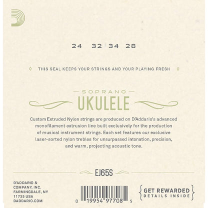 D'Addario EJ65S Soprano Ukulele Strings with Custom Extruded Nylon and Made In The U.S.A.