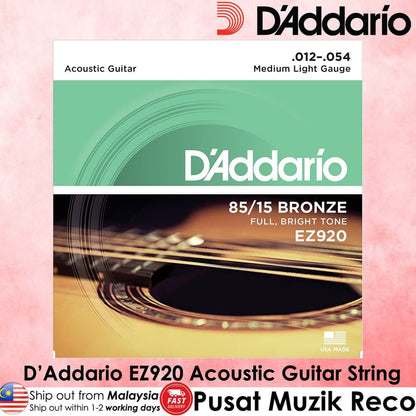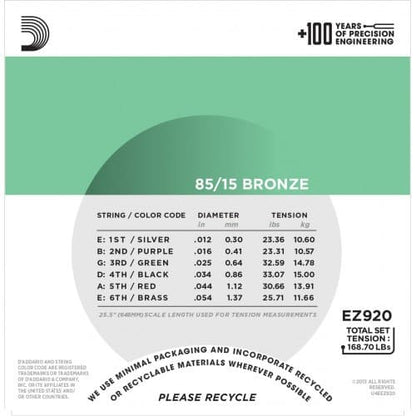 D'Addario EZ920 85/15 Bronze Acoustic Strings, 012-054
