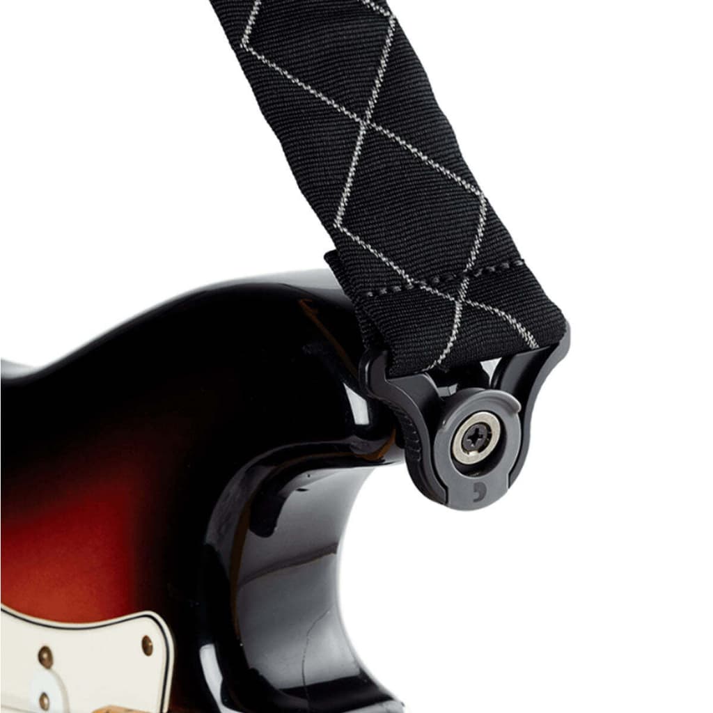 The D’Addario 50BAL02 Auto Lock Guitar Strap is a simple integrative strap locking system built for your performance. The latch is spring-loaded, so it automatically clamps down on the strap button and will not release unless desired. The D'Addario Auto Lock Guitar Strap works with most strap buttons on the market. Designed in collaboration with Ned Steinberger.