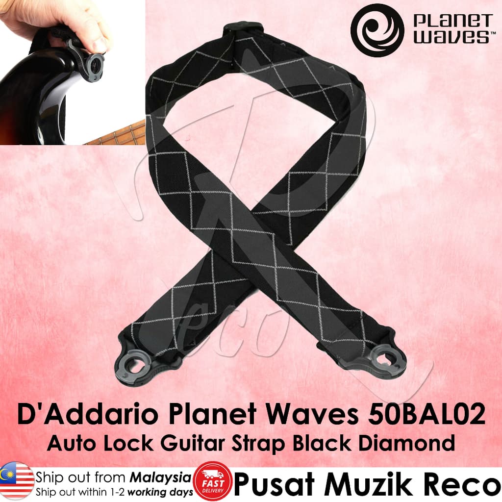D'Addario Planet Waves 50BAL02 Auto Lock Guitar Strap, Black Padded Diamonds