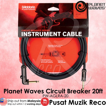 D'Addario Planet Waves PW-AGRA-20 Circuit Breaker Momentary Mute Guitar Cable 20ft Right Angle