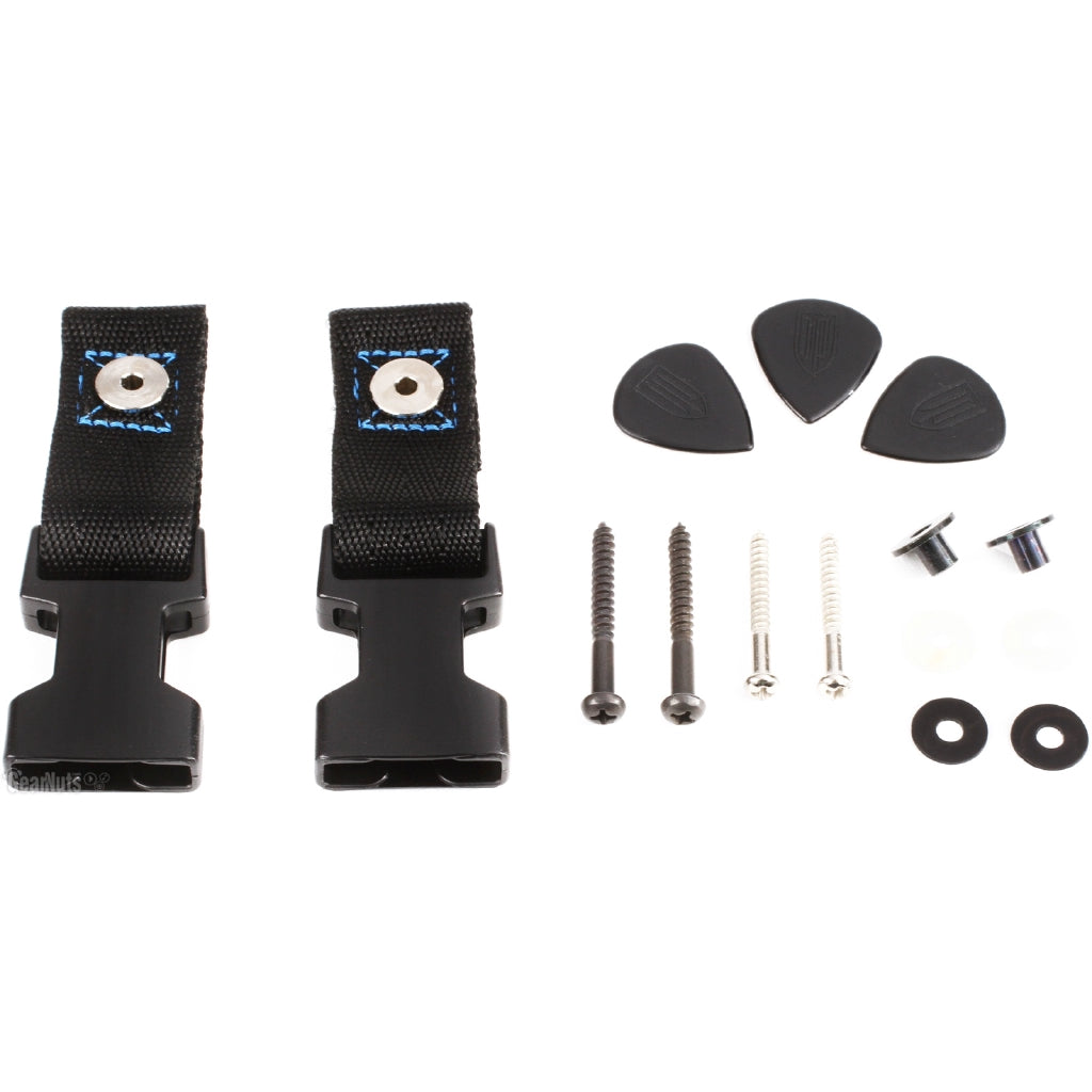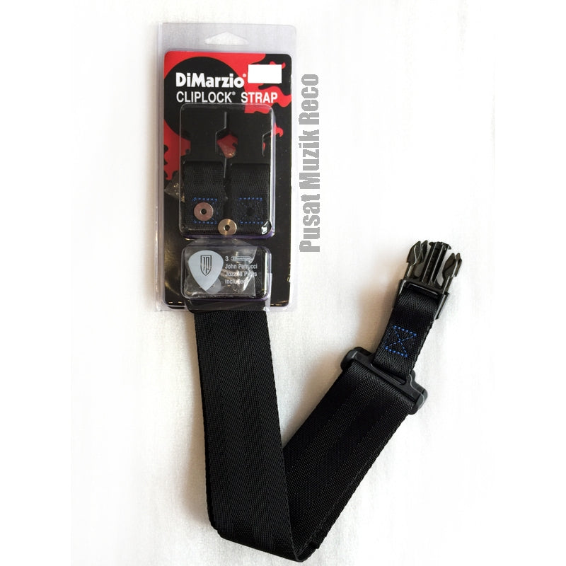 DiMarzio ClipLock Quick Release Guitar Straps were the first to feature the heavy-duty plastic clip that allows you to easily change from guitar to guitar with a little fingertip pressure. ClipLock Quick Release Guitar Straps are the industry standard for strength, security, and quality, and attach securely to your guitar with two sturdy bushings and extra-long screws sized to fit the strap bushing screw holes on most electric guitars and basses.