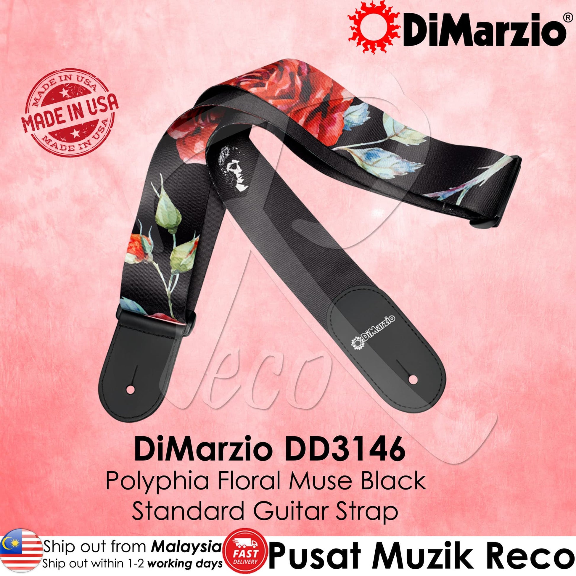 DiMarzio DD3146 2" Polyphia Floral Muse Black Guitar Strap
