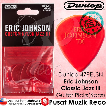 Dunlop 47PEJ3N Eric Johnson Classic Jazz III 1.38mm Guitar Picks Player Pack, 6pcs/Pack
