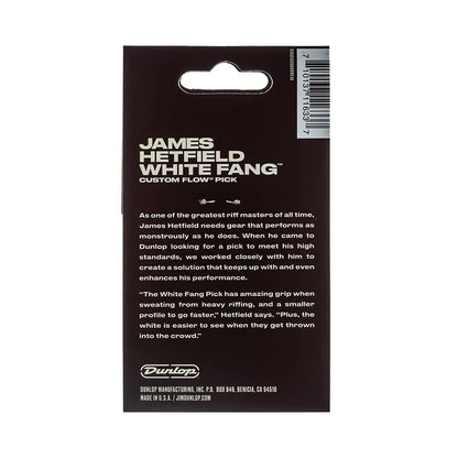 When the master of heavy riffing comes to you asking for a pick designed to hold up to his standards, the only thing to do is listen and listen closely. This is exactly what Dunlop did when none other than James Hetfield approached them to design a pick made for heavy attack and outstanding response. Using their classic Flow Standard Pick as a foundation, Dunlop developed the James Hetfield White Fang Custom pick. This custom pick brings a snappy attack and crisp articulation.
