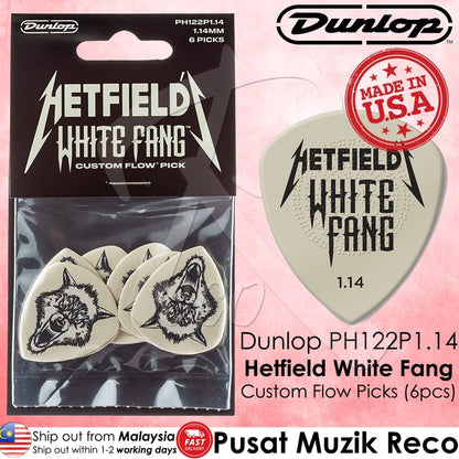 Jim Dunlop PH122P114 James Hetfield White Fang Custom Guitar Pick 1.14mm Guitar Picks Player Pack (6pcs)