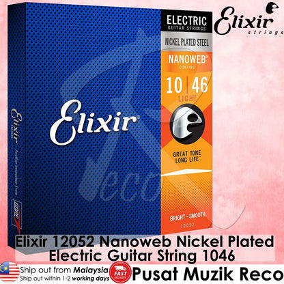 Elixir 12052 Electric Nanoweb strings don't just sound great; their micro-thin (5-micron) coating keeps them sounding great for a whole lot longer than average strings. If you want to keep your guitar tone consistently great day in and day out, put on a set of Elixir Electric Nanoweb strings. Their coating actually cuts down on unnecessary finger friction. You'll be amazed at how long they last! Less string changes mean having to buy strings less often. So, if you want to get the most out of your guitar, grab a set of Elixir Electric Nanoweb strings!
