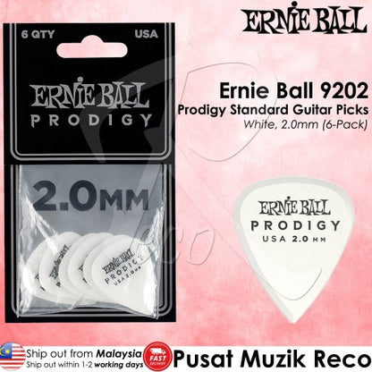 Ernie Ball PO9202 Prodigy Standard 2.0mm Guitar Picks, White, 6-Pack