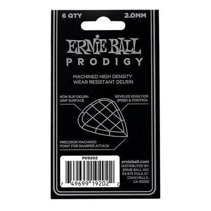 Ernie Ball Prodigy picks feature highly durable Delrin material for a more secure non-slip surface. The machined beveled edge and sharp point at the bottom allow for less drag, added articulation, and precise control while playing.