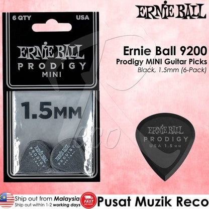 Ernie Ball PO9200 1.5mm Black MINI Prodigy Guitar Picks, Pack Of 6