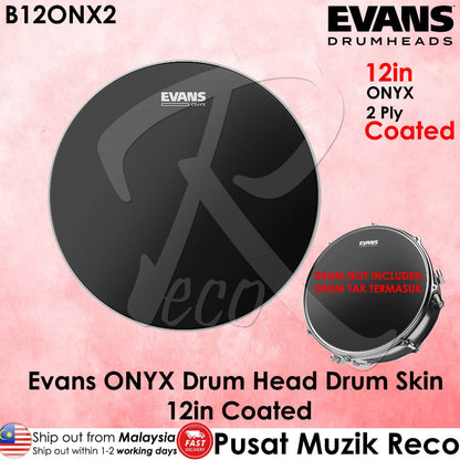 Evans B12ONX2 Onyx Coated Matte Black Batter Drum Head, 12 Inch :