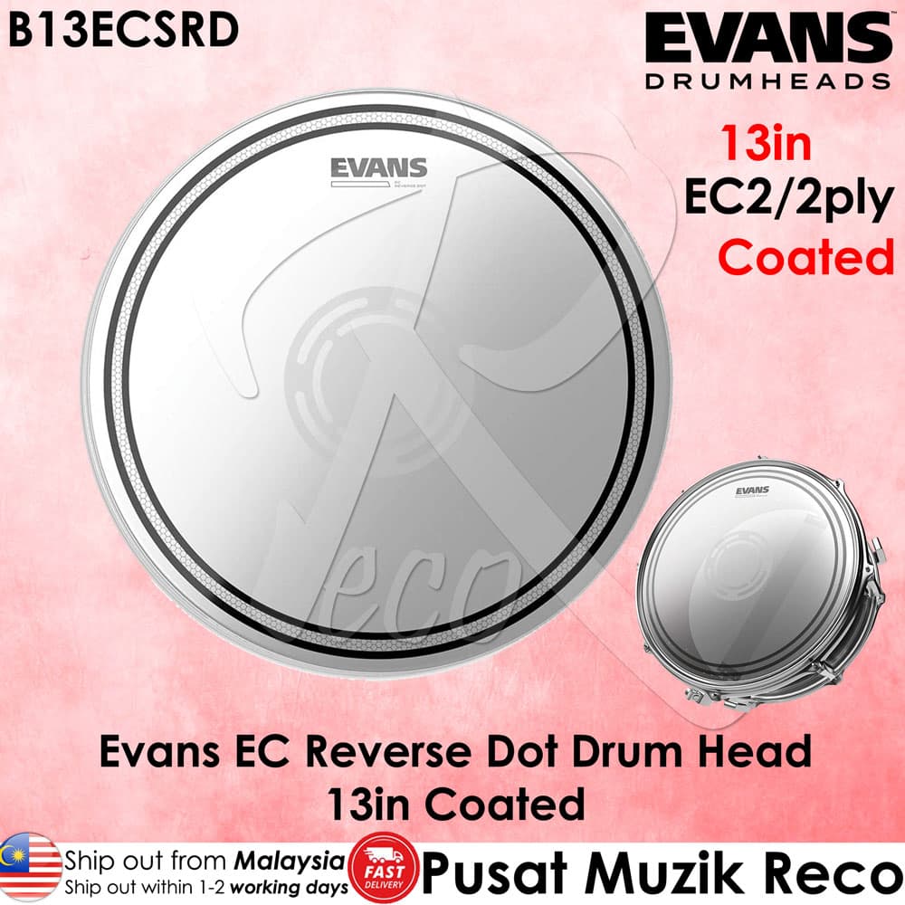The Evans EC Snare 13" Reverse Dot is a 13" Reverse Dot Snare Drum Batter Head. A controlled sound but with resonance and sensitivity at all tuning and dynamic ranges, EC Snare head combines two plies of film (6.5mil external, 10mil internal) with Evan's 'Edge Control' technology to eliminate the mid-range frequencies that muddy up the mix, leaving crisp highs and deep lows. The reverse dot version lends added durability and accentuated attack without choking the overall sound.