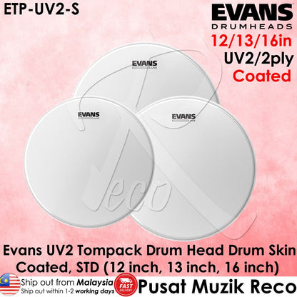 EVANS ETP-UV2-S 12", 13", 16" UV2 Coated Drum Head Pack: