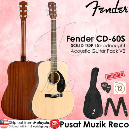 Fender 0970110421 CD-60S SOLID TOP Dreadnought Acoustic Guitar Pack V2 Specifications: