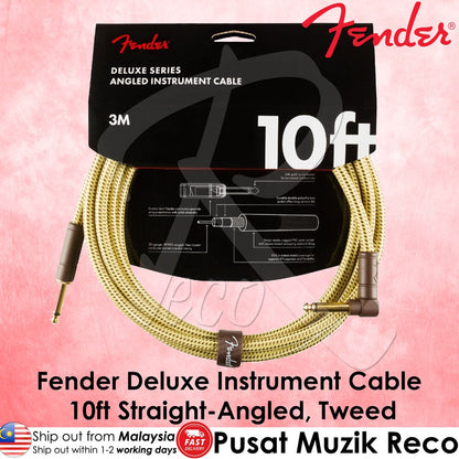 Fender 0990820091 Deluxe Series Angled Instrument Cable, 10ft Tweed