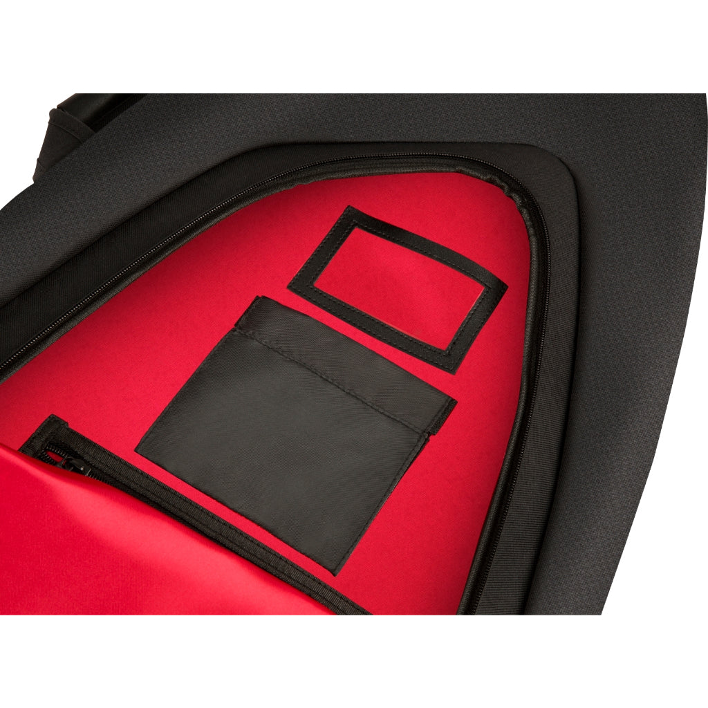 - Front storage pocket with business card window, pocket for extra strings, fixed tool pouch