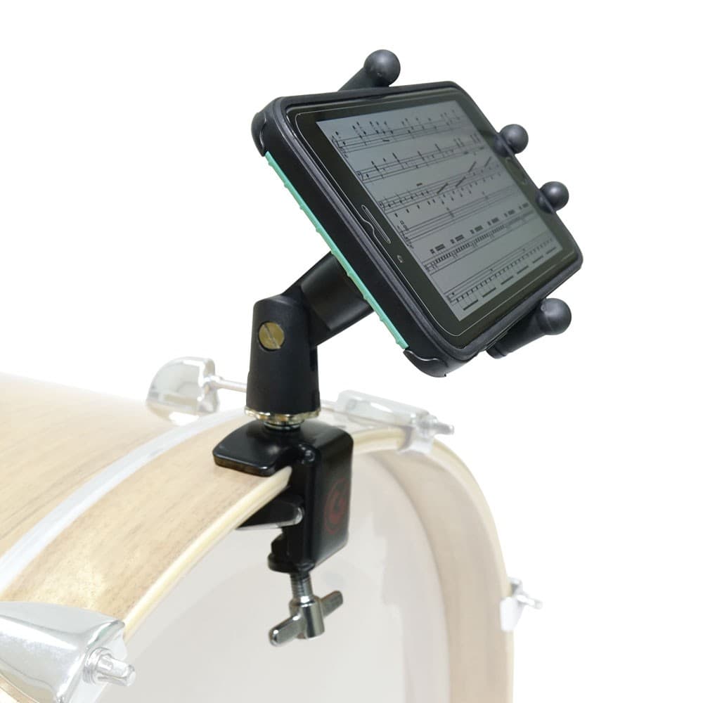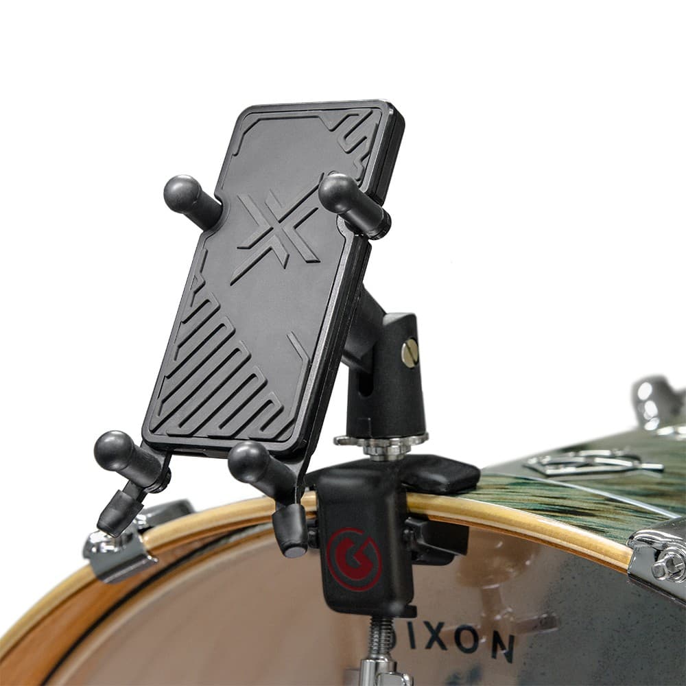 - Attach your smartphone to your bass drum hoop for easy touch screen access and discreet placement