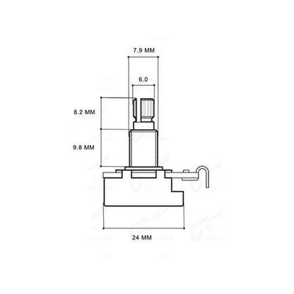 Knob Shaft - The pots used in guitars come with three standard shaft profiles. It is important that the knobs match the pots used or damage can result to both, please select the matching knobs from our range. The three-shaft profiles available are -