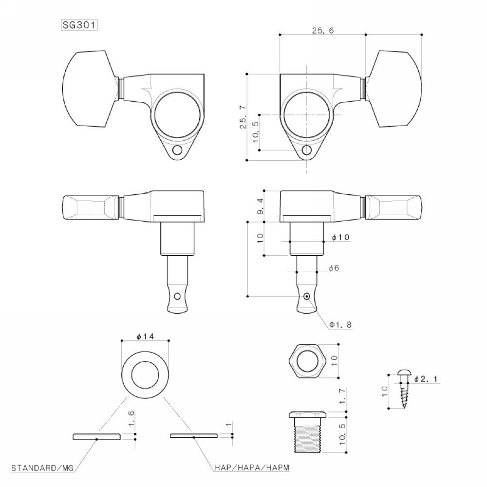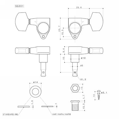 The standard-size versions of GOTOH's sleek modern tuners feature cast housings and sealed gears. Permanent Lubri-Coat™ these tuners are smooth and precise. Rock-Solid™ string posts eliminate looseness, for improved tuning stability.
