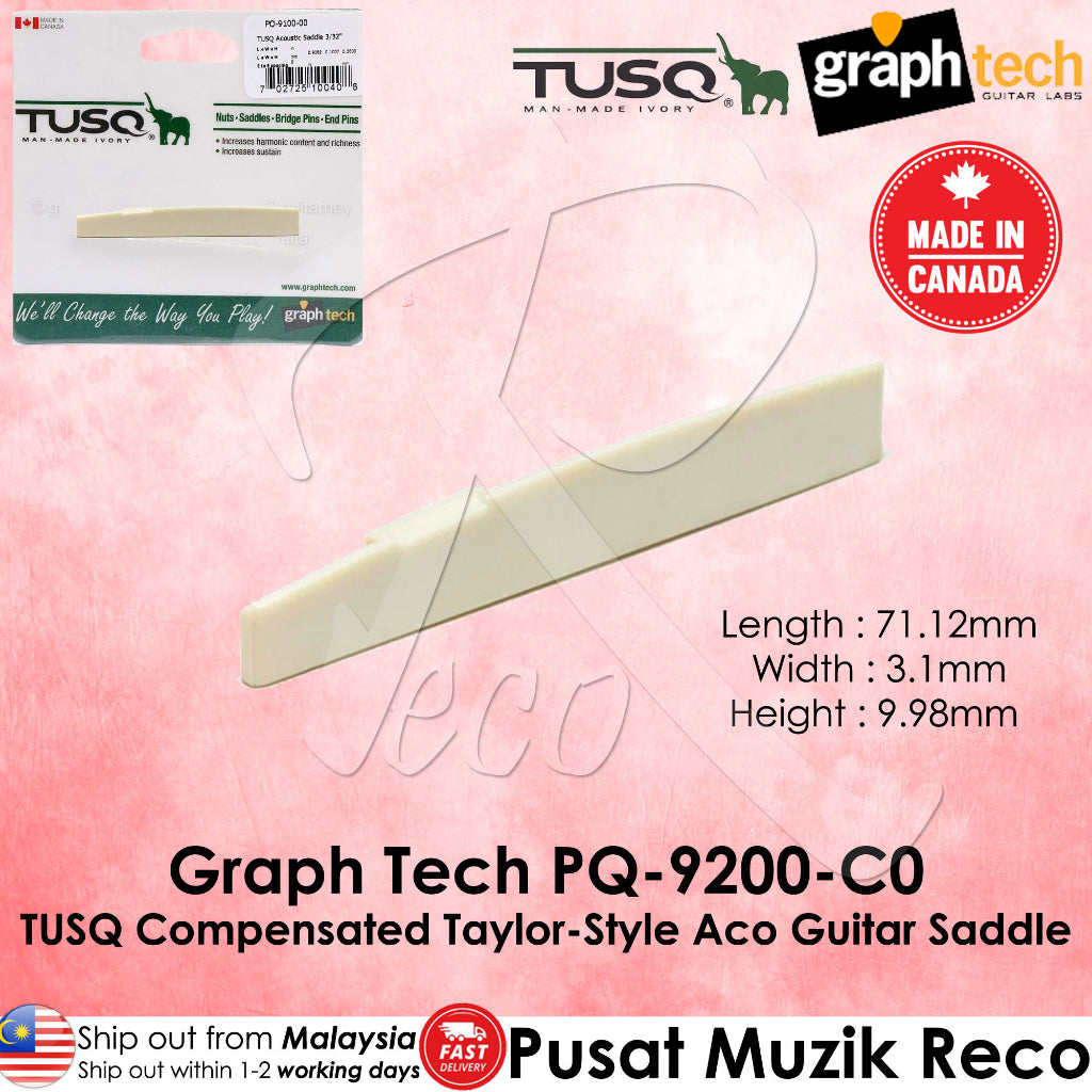 If you play acoustic guitar, you simply must hear what a Graph Tech TUSQ Taylor-style saddle can do for your sound. Clear, bell-like highs and expansive low end, rich harmonic overtones - the difference is like night and day. All from changing your saddle? Sure, You see, TUSQ nuts, saddles and bridge pins are highly efficient at transferring string vibrations to the guitar body, making your acoustic come alive. That's the reason top guitar makers use them.