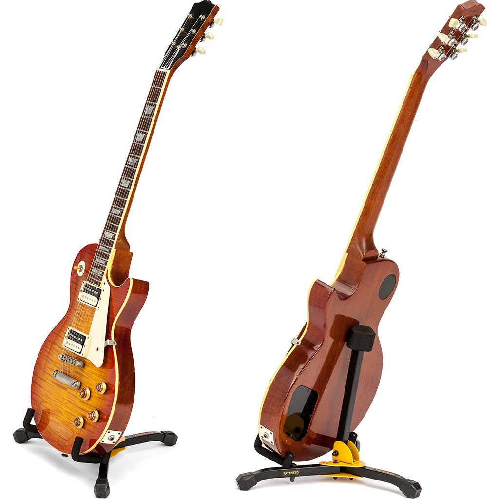 The HERCULES Mini Guitar Stand GS402BB for Electric or Bass Guitar is designed to fold up quickly and pack into the included Carrying bag.