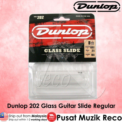 Jim Dunlop 202 Guitar Pyrex glass slide provides a warm, thick tone that accentuates the middle harmonics of your sound, featuring regular wall thickness and a medium diameter.