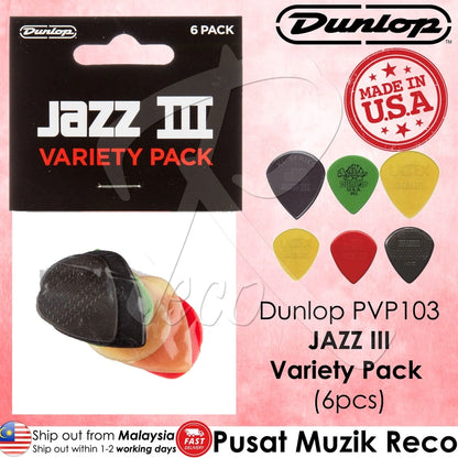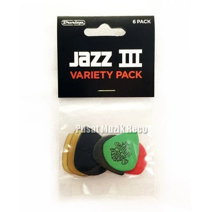 Jim Dunlop PVP103 Variety Jazz III Guitar Picks Player Pack, 6pcs/Pack