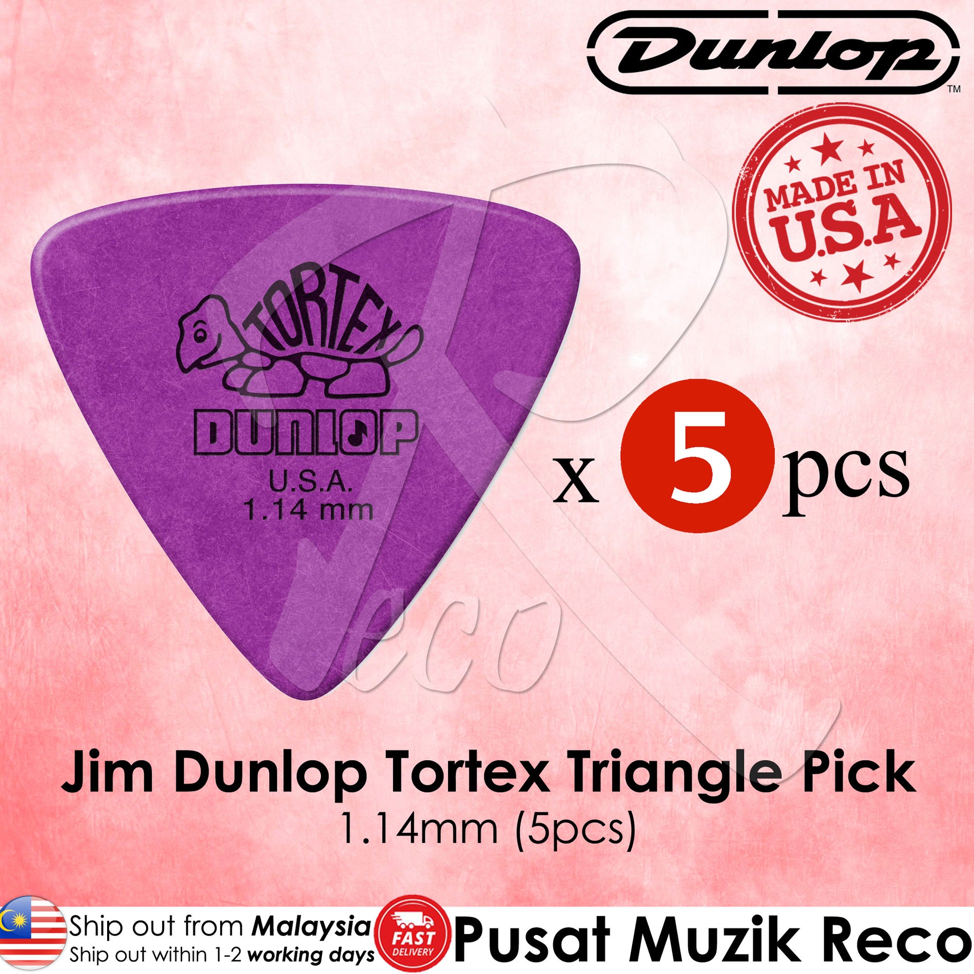 Jim Dunlop 431-114 Tortex Triangle Guitar Picks - 1.14mm Purple (5-pack):