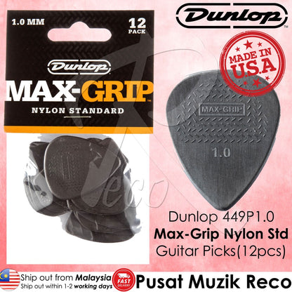 Jim Dunlop 449P100 Nylon Max Grip Standard Guitar Picks 1.0mm 12-pack