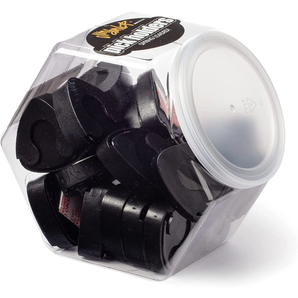 Jim Dunlop 5001 Scotty Black Pick Holder features a spring-loaded sleek black design. Keeps pick accessible during the performance. Adhesive-backed.