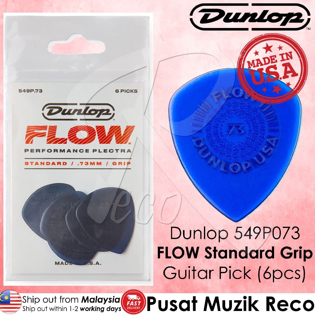 Jim Dunlop 549P073 Flow Standard Grip Guitar Pick 0.73mm Guitar Picks Player Pack, Pack of 6