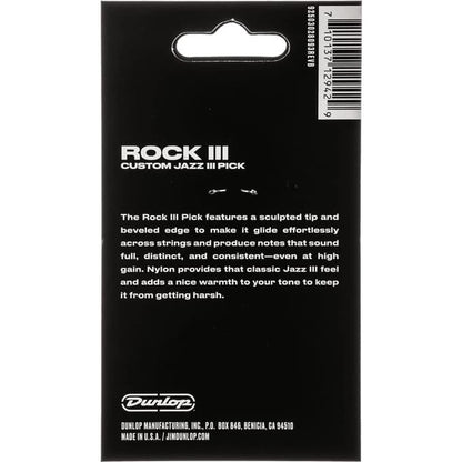 Jim Dunlop 570P1.38 Rock III Nylon Custom Jazz III 1.38mm Guitar Picks Player Pack, 6pcs/Pack
