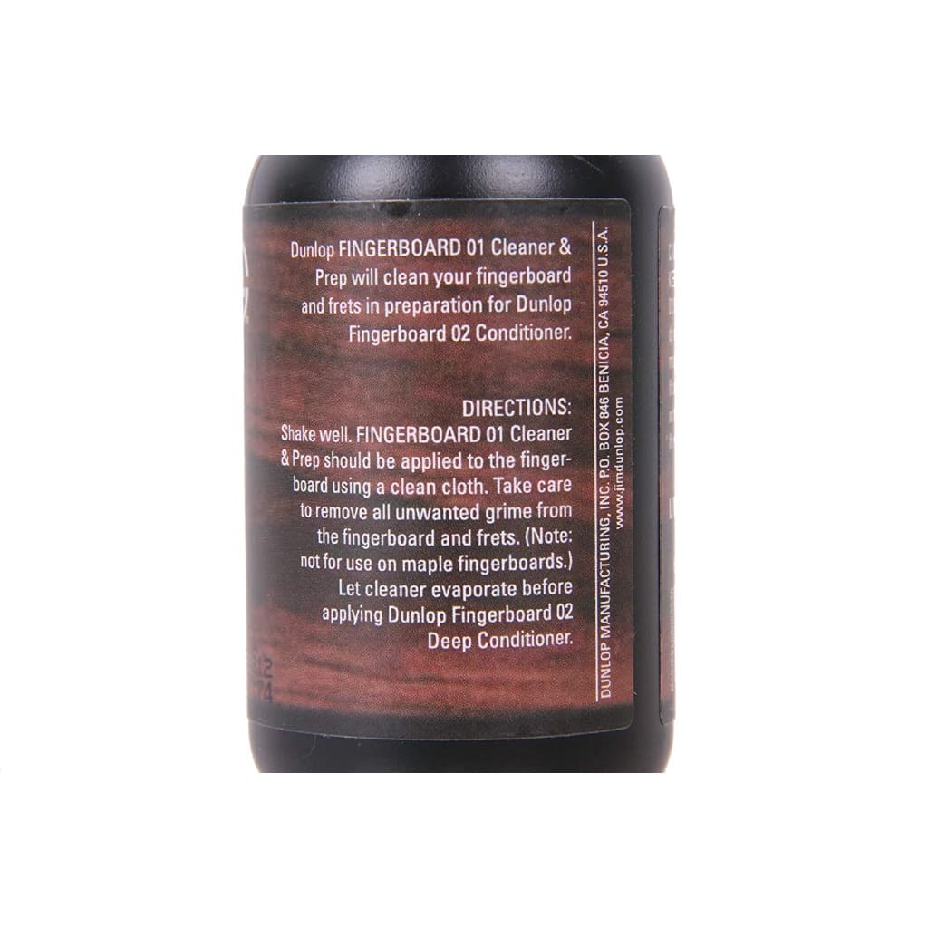 - Dunlop Fingerboard 01 Cleaner & Prep is specially formulated for unvarnished hardwood fingerboards on all stringed instruments.