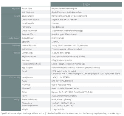 Kawai ES-120 88 keys Digital Piano with Stand, Bench, Headphone and Acc - Black