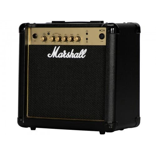 The Marshall MG15G is loaded with a pure Marshall tone. You get your choice of Clean and Overdrive channels that you can shape with a 3-band EQ. Best of all, each channel's settings are storable and recallable. The MG15G is loud enough to rattle the windows during practice sessions, while its revolutionary solid-state design convincingly emulates a tube amp's tone and response. Beyond that, the MG15G supplies you with a line input for music players and emulated headphone and line outputs. Part of Marshall's MG Gold series, the MG15G is a great-sounding practice amp.