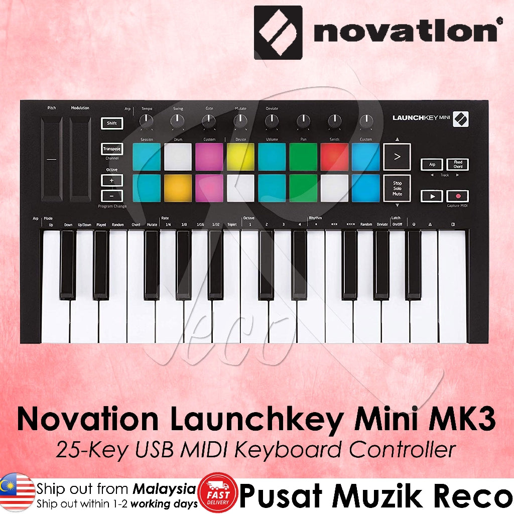 Launchkey Mini is Novation's most compact and portable MIDI keyboard controller. It has 25 miniature keys and fits into almost any travel bag. It gives you everything you need to start creating in Ableton Live. Make tracks anywhere with Launchkey Mini’s deep, intuitive Ableton control, arpeggiator, fixed chord mode, MIDI out, and tons of sounds in the box.