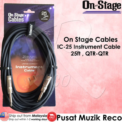 On Stage IC-25 Guitar / Instrument Cable 25 FT. (QTR-QTR):