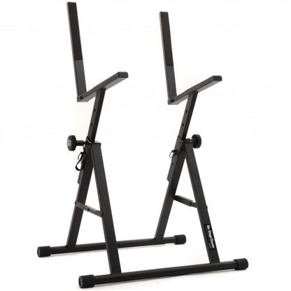 - Heavy-duty base with locking cross braces delivers strength for stable amp support