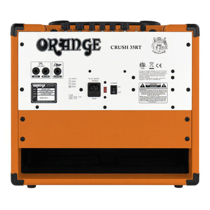 The fully-loaded Orange Crush 35RT brings you gut-punching tones with highly responsive overdrive and mind-blowing levels of detailed saturation. Featuring two foot switchable channels, the Crush 35RT's 4-stage pre amp provides you with enormous, wide-ranging tones that will take you back to the heady days of no-nonsense, old school analog guitar amplifiers. You also get Orange's innovative CabSim circuit that faithfully emulates the muscle of an Orange 4 x 12" cabinet through the Crush 35RT's headphone/line output, as well as an on board tuner and reverb. All that and a fully buffered low-impedance effects loop!