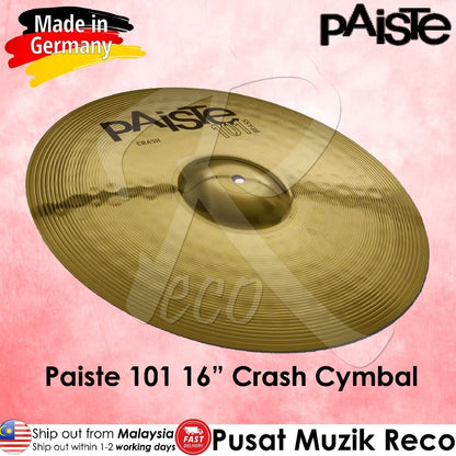 The Paiste 101 Brass 16'' Crash Cymbal offers impressive Paiste quality sound and durability at an affordable price. The Paiste 101 Crash Cymbal is extremely versatile. With a medium-short sustain and medium weight, the 101 Crash Cymbal is perfect for a variety of playing styles.
